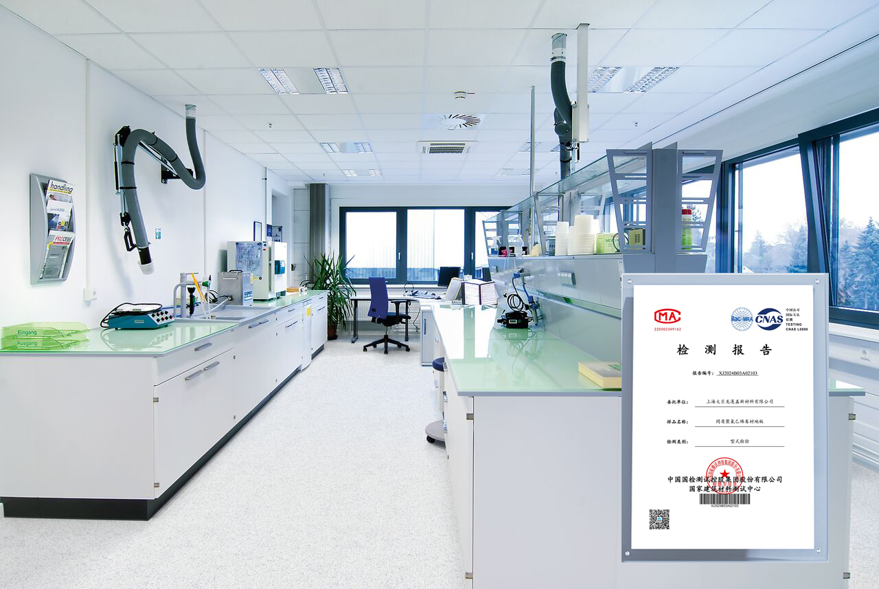 【技术突破】大巨龙领跑环保地材赛道!同质透心卷材地板通过国家级全项检验