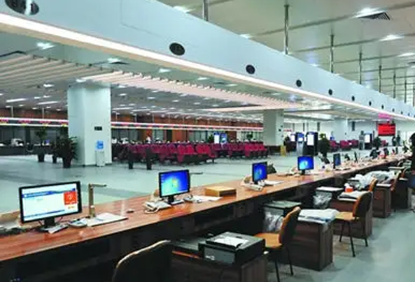 中山市行政服务中心自2015年运营以来,整合全市35个市直及中央、省管单位,集中办理近600项行政审批与公共服务事项,日均人流量超3000人次,是中山市“一站式”政务服务核心枢纽。为提升办事效率与群众体验,2024年中心启动地面改造项目,选用大巨龙工厂定制化PVC卷材地板,打造安全、环保、耐用的政务服务环境。
