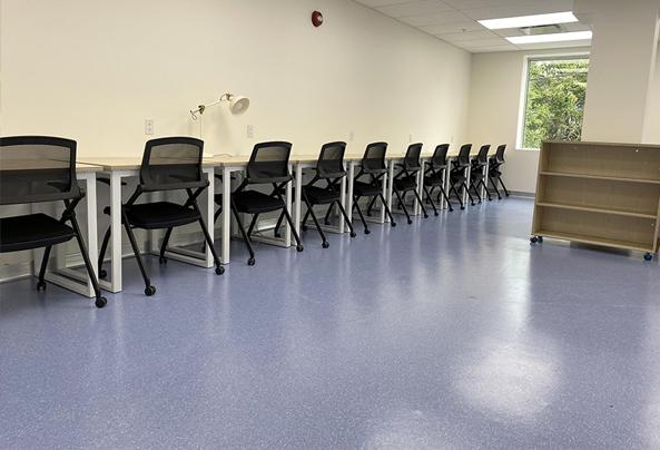 在美观方面,大巨龙同质透心地板为St.John's Academy的教室增添了独特魅力。学校巧妙选用亮丽蓝色和米白色的大巨龙地板,蓝色如同窗外的湖水,纯净清澈,有助于激发学生的灵感和想象力;米白色则如象牙般晶莹整洁,让学生心态平和宁静。两种颜色搭配,让教室充满活泼的青春气息,构建出令人向往、充满探索欲的教育空间,让孩子们更愿意沉浸在学习中。